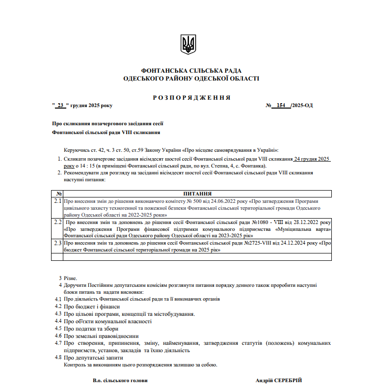 Акти Фонтанської сільської ради
