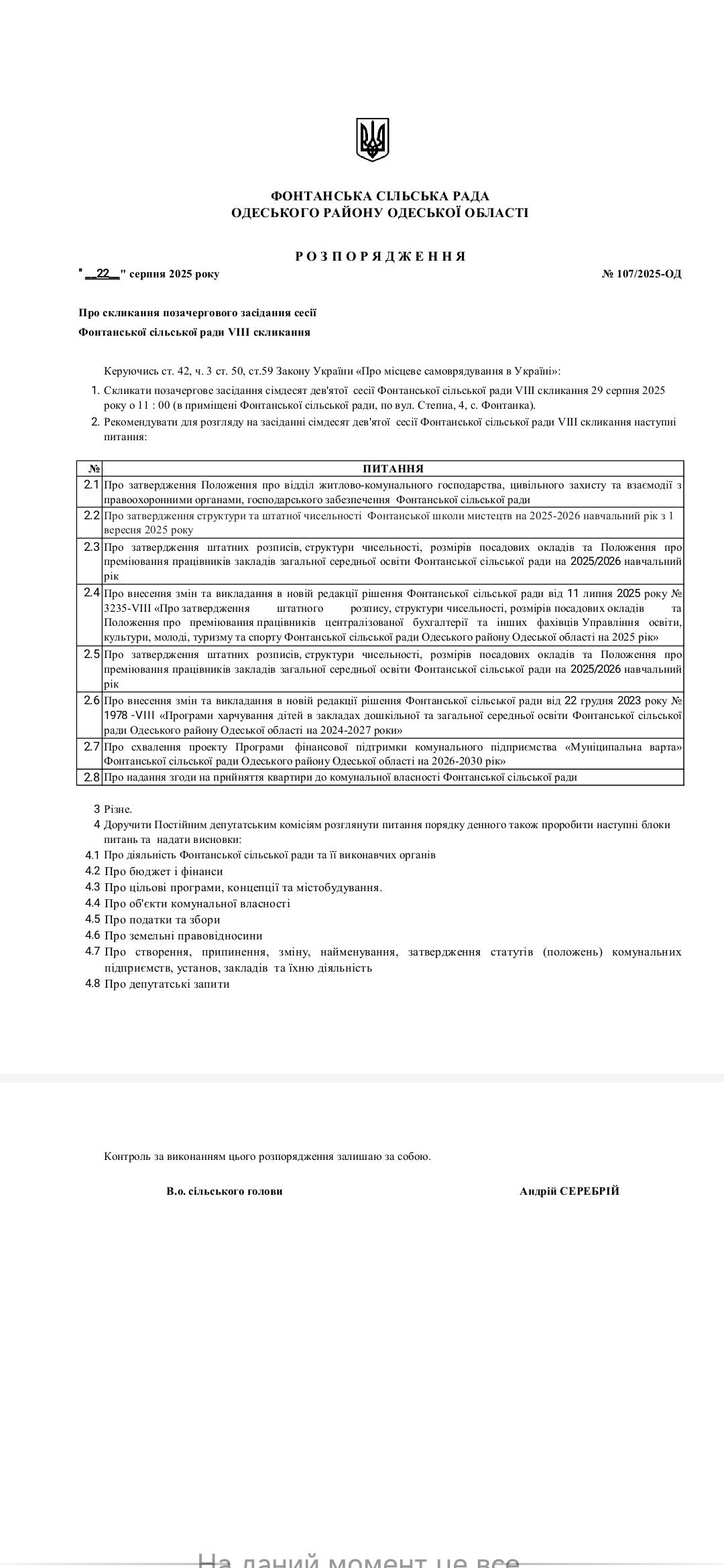 Регуляторні акти Фонтанської об’єднаної територіальної громади